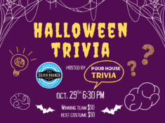Get ready for a spooky good time at our Halloween Trivia Party on Wednesday, October 29th at 6:30 PM! Join us for Halloween-themed trivia rounds with Pour House Trivia. Costumes are highly encouraged, and we’ll be giving out a $50 prize to the winning trivia team AND another $50 prize for the best costume! Don’t miss out on the ghoulish fun!